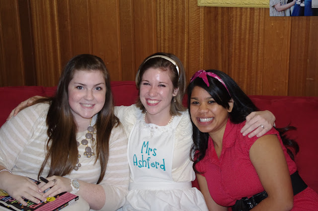 Speaking of games....BethAnne put together a 50s Price is Right, having the guests guess what the items 1950s price would be. And then we also had a MadLibs-type game, where we gave Ems some "Marriage Advice." After we filled in the blanks, we read the original "Good Wife's Guide to a Happy Marriage" and oh my....it's hilarious.